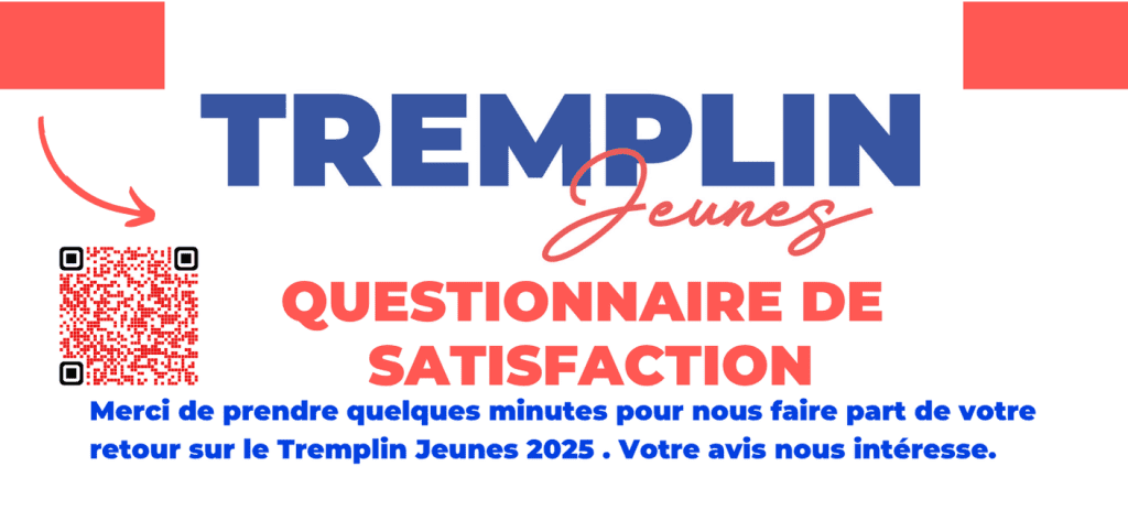 Parce que chaque retour compte, partagez votre expérience et contribuez à la réussite de la prochaine édition du Tremplin Jeunes, le rendez-vous des 14-25 ans.