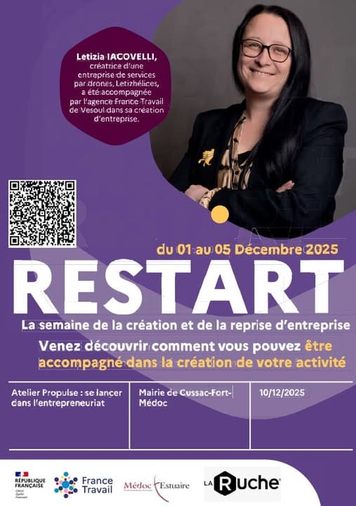 A l'occasion de la semaine ReStart de France Travail , la Communauté de Communes Médoc Estuaire en partenariat avec France Travail et La Ruche organise un atelier Pro'Pulse dédié à la création ou la reprise d'entreprises.