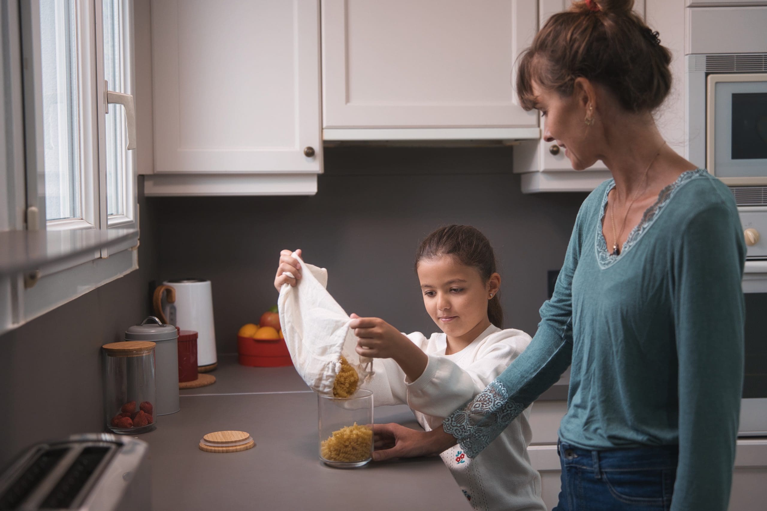 - Privilégier l’achat en vrac en remplissant ses propres contenants (sacs en tissu, bocaux, boîtes en plastiques…) ;
