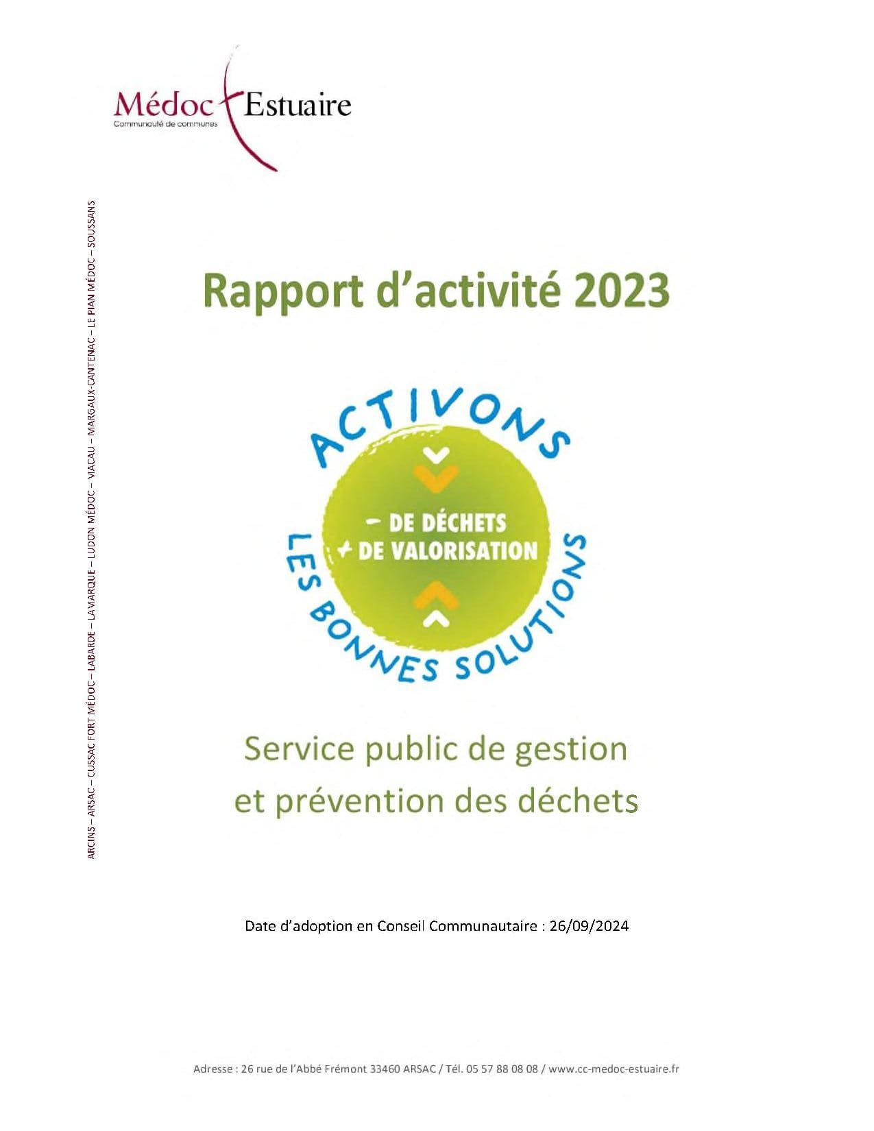 Rapport d’activités 2023 – service public de gestion et prévention des déchets